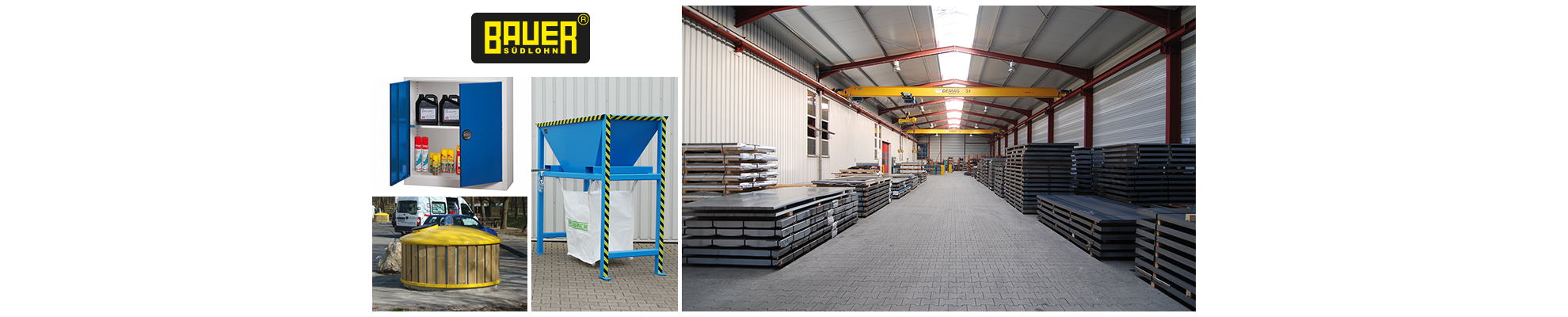 Die BAUER GmbH entwickelt, produziert und vertreibt weltweit Stapleranbaugeräte, Umweltschutz-Ausrüstungen sowie Wertstoff- und Abfallcontainer. 1966 von Heinz Dieter Bauer gegründet, ist die BAUER GmbH heute einer der führenden Hersteller in Europa. Qualifizierte Mitarbeiter und der Einsatz modernster Fertigungstechnologien garantieren Produkte auf höchstem Sicherheits- und Qualitätsniveau. Das seit 1993 zertifizierte Qualitätsmanagementsystem nach DIN EN ISO 9001 sichert dabei die gleichbleibend hohe Qualität „made by BAUER“.