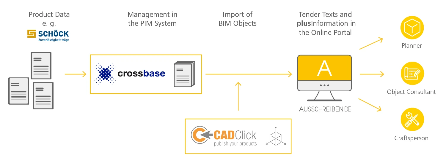 Thanks to the partnership between AUSSCHREIBEN.DE, 4PACE and crossbase, existing AUSSCHREIBEN.DE catalogs can be updated automatically. Product manufacturers, such as Schöck Bauteile, benefit from this partnership: with little effort, they offer architects and planners a valuable, convenient service.